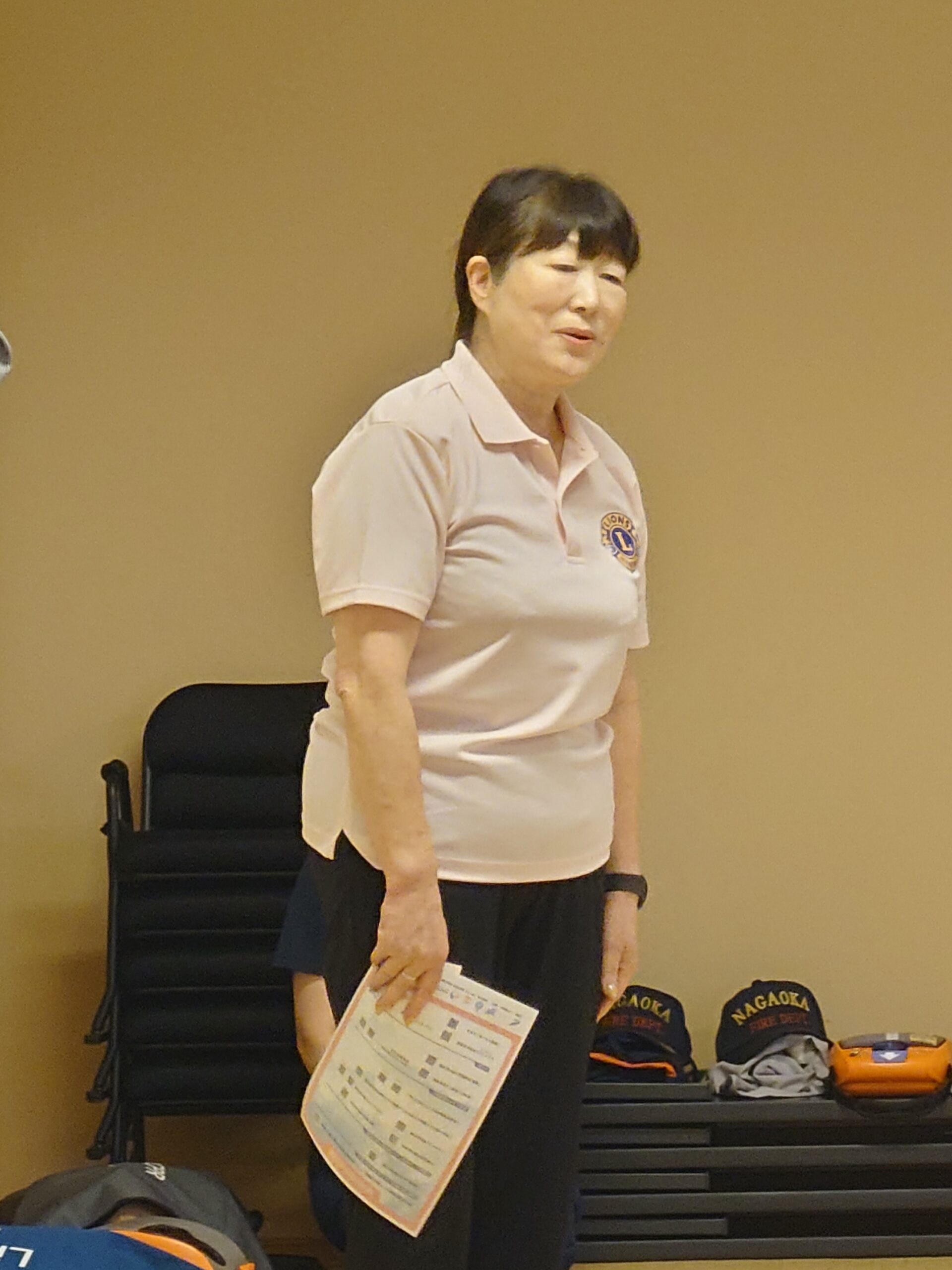 長岡柏ライオンズクラブ会長L髙橋裕子・大会実行委員長L横山勝己の挨拶、長岡消防署職員の方より講習会の説明あり。
