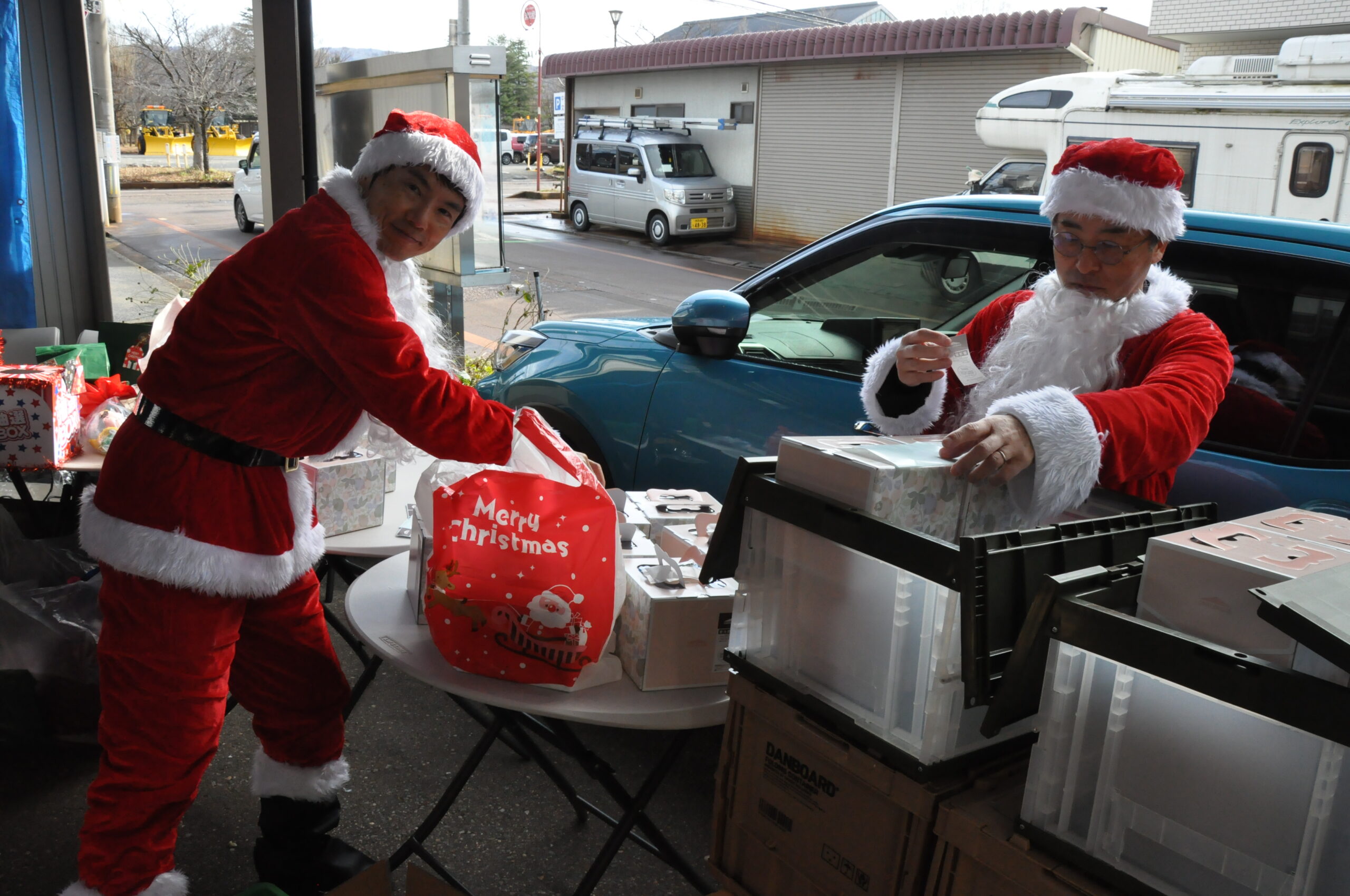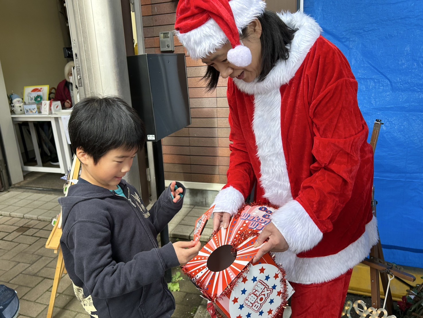 子供たちの受付、くじ引き、プレゼント渡し、クリスマスケーキ渡しです。