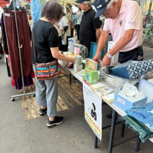 不用な贈答品や日用品を持ち寄り販売しました。お天気にも恵まれ、多くの来場者で賑わっていました。