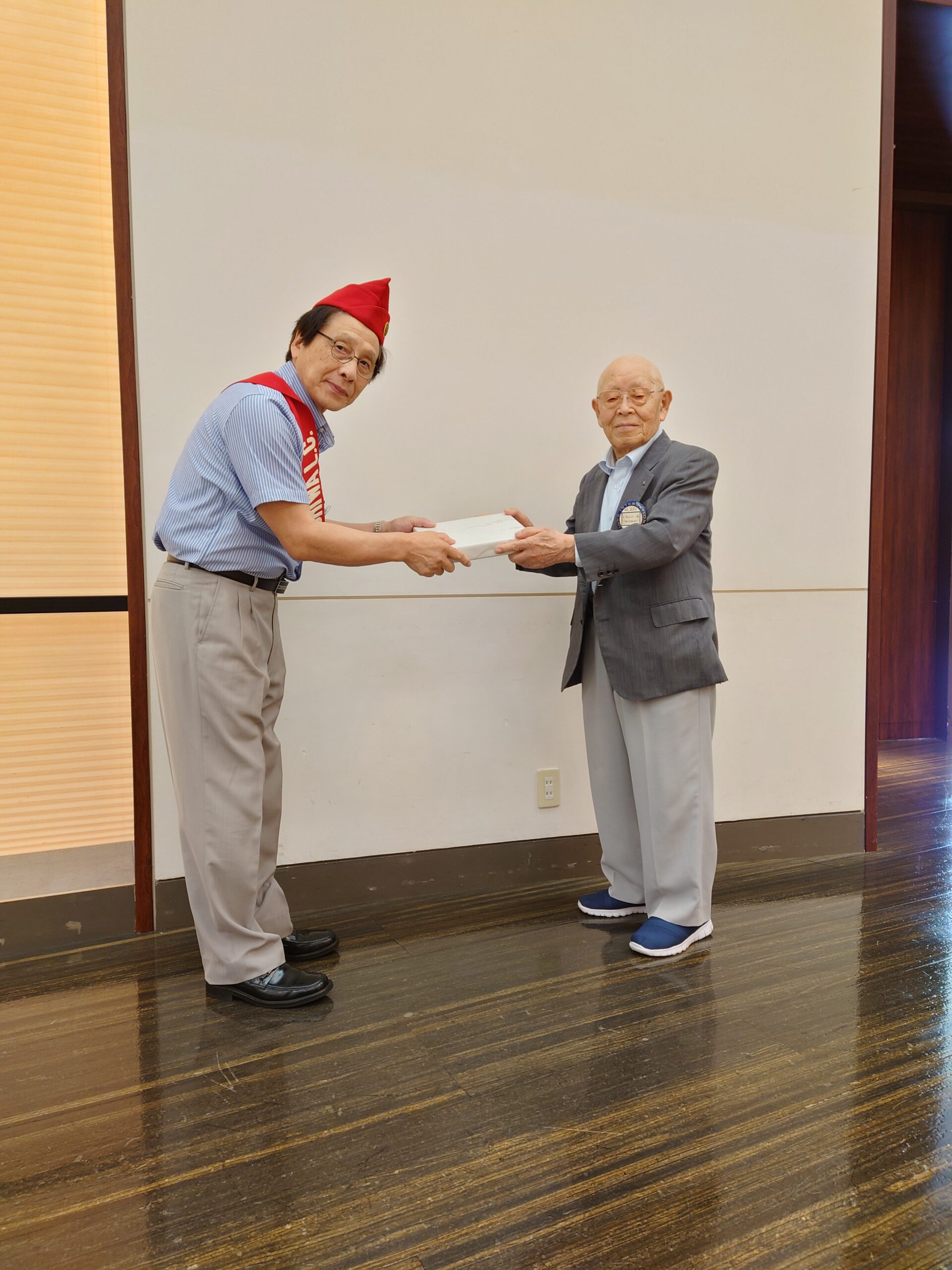 昨年度ドネーション上位の丸山小一郎ライオンへ、テール・ツイスター近藤忠義ライオンより記念品の贈呈がありました。
