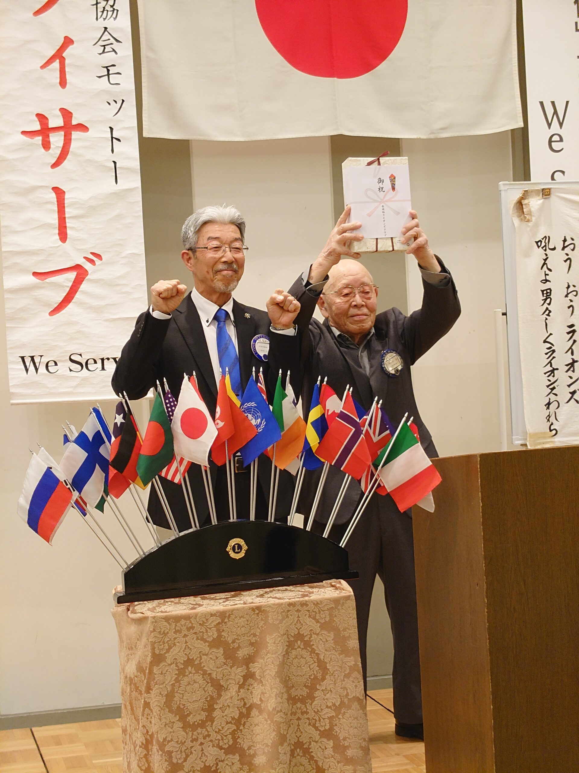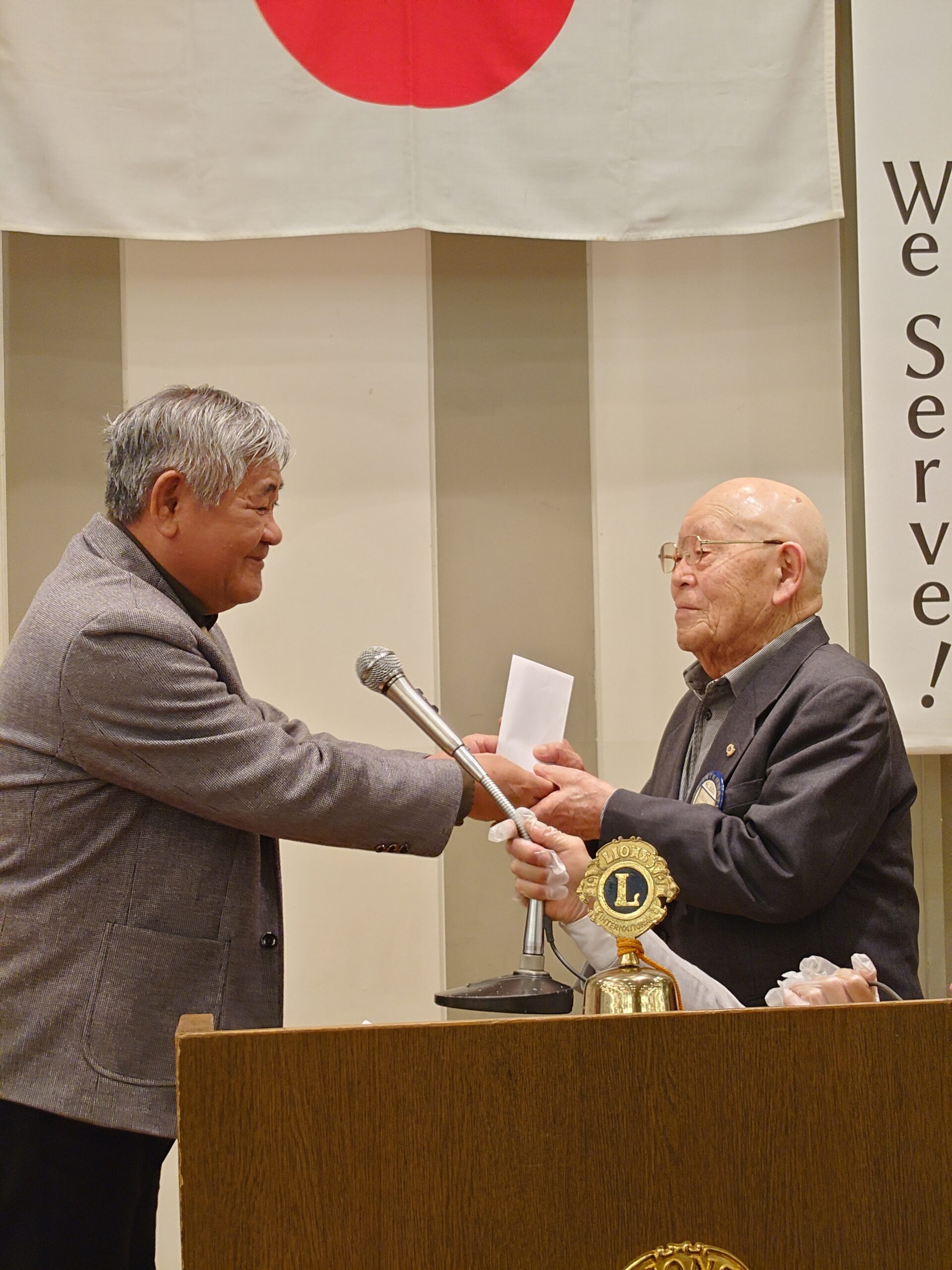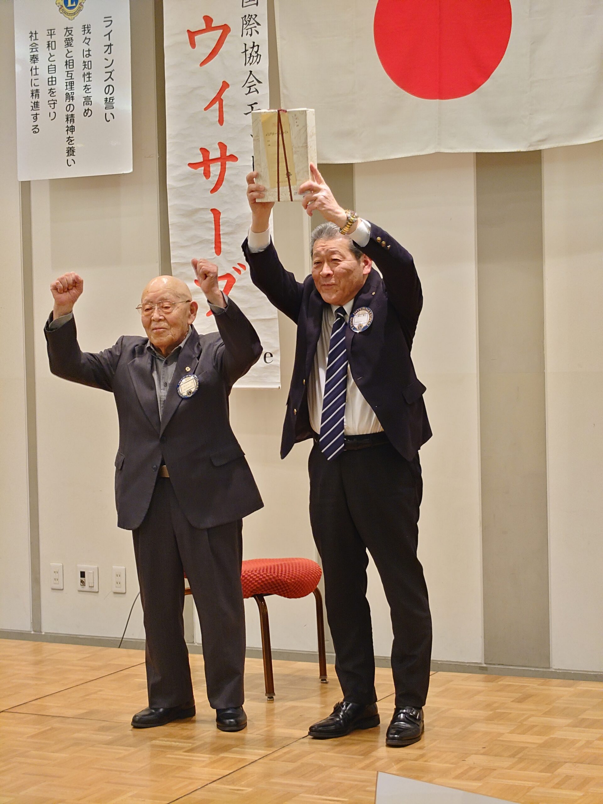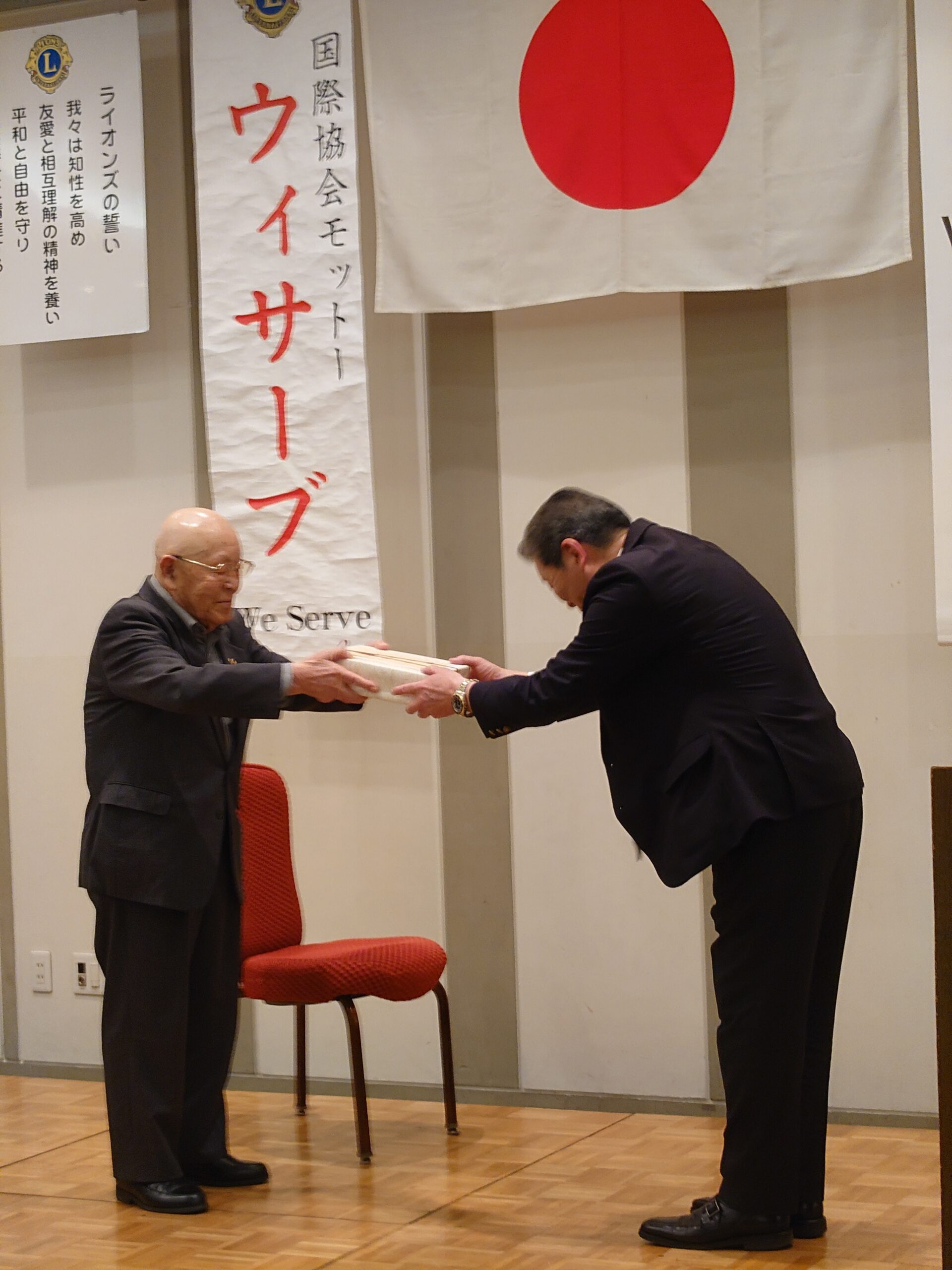 ◎チャーターメンバーL丸山小一郎へ会長L新井久平より記念品の贈呈 ◎L丸山小一郎よりお礼のご挨拶
