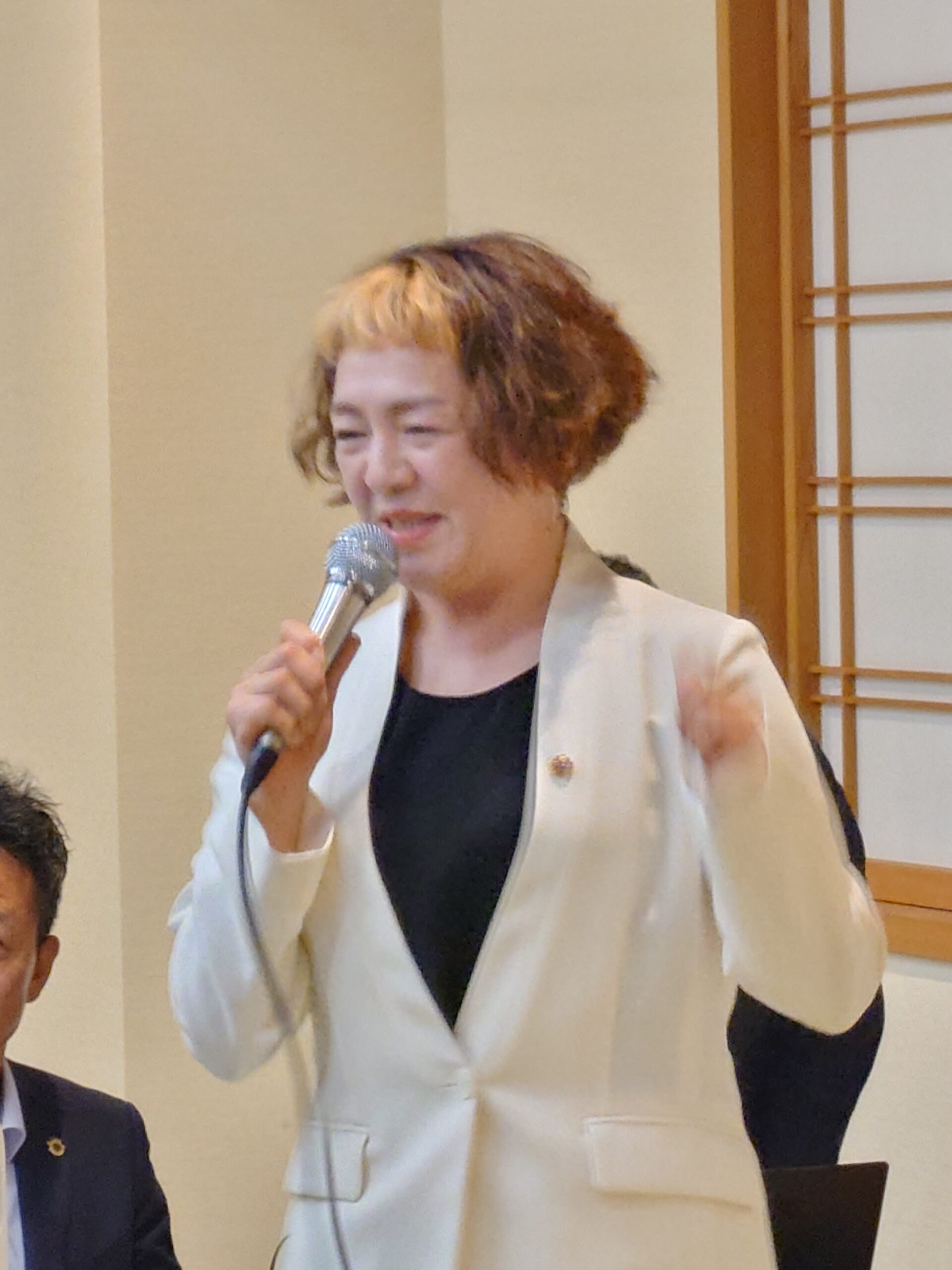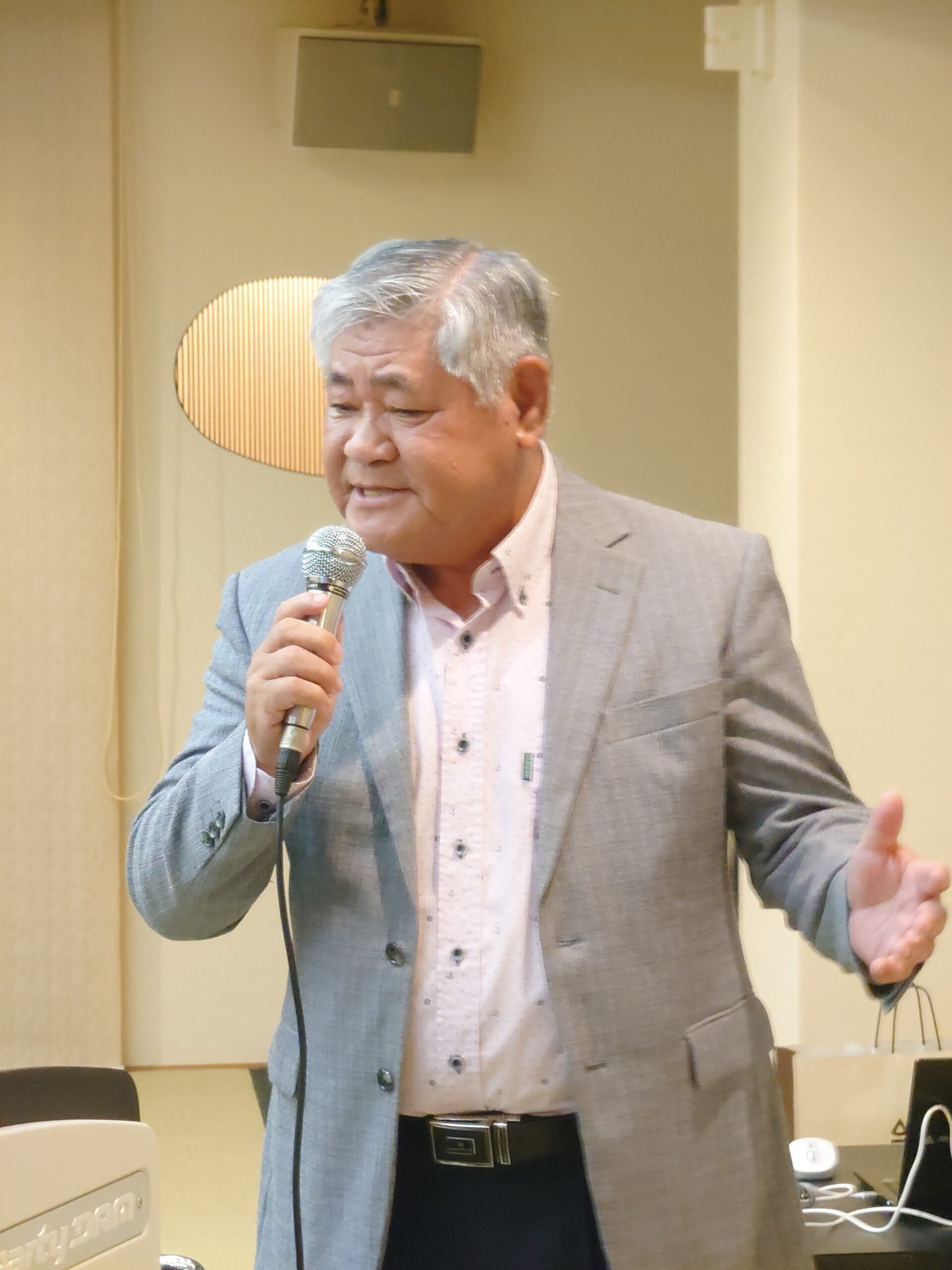 本日のアトラクション『のど自慢大会』。計画委員長L礒谷哲夫の司会でスタート。